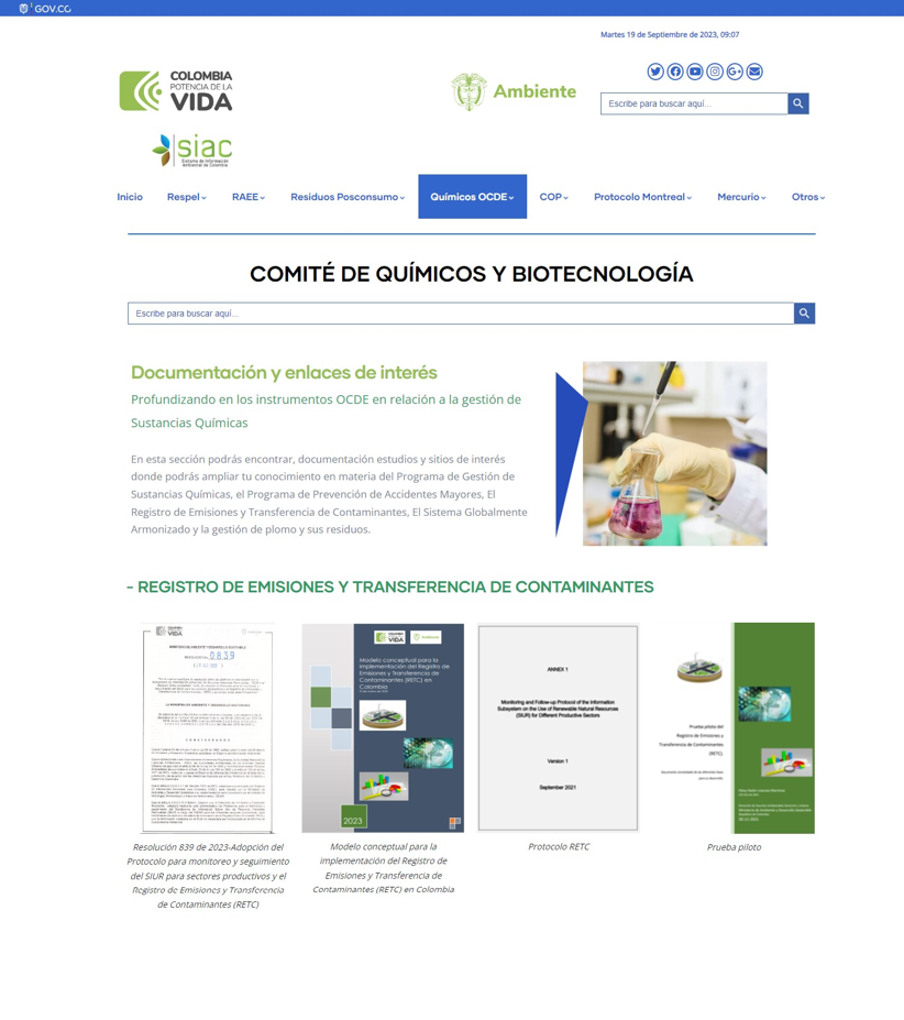 Para más información, consultar la página web del Ministerio de Ambiente y Desarrollo Sostenible de Colombia: https://quimicos.minambiente.gov.co/ocde-documentos-enlaces/.”